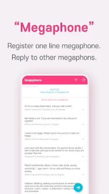 - You can post a megaphone which will be shown to a number of another lesbian and you can reply to different megaphone message.
